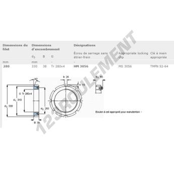 Cet écrou HM3056-SKF possède un diamètre intérieur de 280mm, un diamètre extérieur de 330mm et une épaisseur de 38mm.