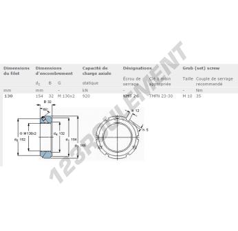 Cet écrou KMT26-SKF possède un diamètre intérieur de 130mm, un diamètre extérieur de 154mm et une épaisseur de 32mm.