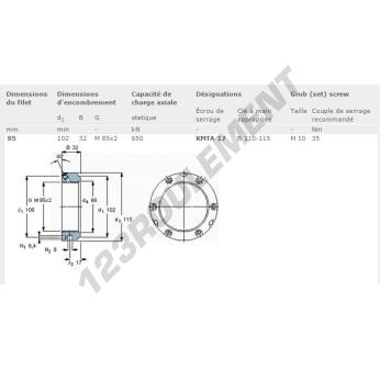 Cet écrou KMTA17-SKF possède un diamètre intérieur de 85mm, un diamètre extérieur de 102mm et une épaisseur de 32mm.