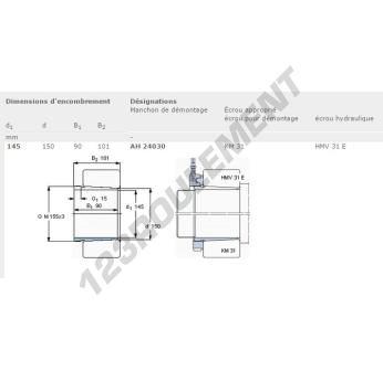 Le Manchon, connu sous la référence AH24030-SKF SKF, possède un diamètre intérieur de 145 mm, un diamètre extérieur de 150 mm et une épaisseur de 90 mm.
