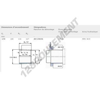 Le Manchon, connu sous la référence AH24036-SKF SKF, possède un diamètre intérieur de 170 mm, un diamètre extérieur de 180 mm et une épaisseur de 116 mm.