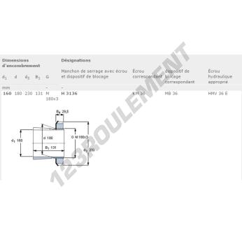 Le Manchon, connu sous la référence H3136-SKF SKF, possède un diamètre intérieur de 160 mm, un diamètre extérieur de 0 mm et une épaisseur de 0 mm.
