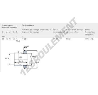 Le Manchon, connu sous la référence H314-SKF SKF, possède un diamètre intérieur de 60 mm, un diamètre extérieur de 92 mm et une épaisseur de 52 mm.