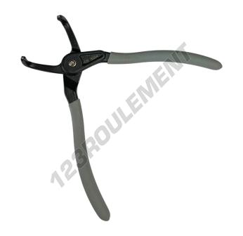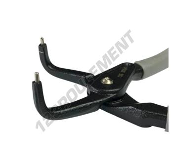 Pince courbéé pour circlips intérieurs avec ressort invisible, fabriqué en acier S45C et 48-52HRC. Les pointes sont en 2HRC haute résistance à la traction.