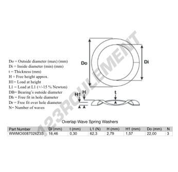 La Rondelle Ondulée à Chevauchement de référence WWMO008702623S possède un diamètre intérieur de 16.46 mm et une épaisseur de 0.3 mm. Elle est fabriquée en matière INOX.