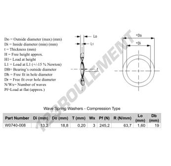 La Rondelle Ondulée - Type Compression de référence WSW-CT-18.800-13.200-0.200-3 possède un diamètre intérieur de 13.2 mm, un diamètre extérieur de 18.8 mm et une épaisseur de 0.2 mm. Elle est fabriquée en matière ACIER.