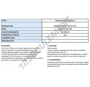Le Loctite SF 734 150ML est un activateur pour adhésifs de 150ML, qui permet d'améliorer la prise des produits Loctite et de réduire considérablement le temps de durcissement, offrant une efficacité accrue.