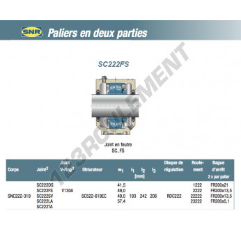 L'Accessoire De Palier connu sous la référence SC222FS-SNR SNR possède un diamètre intérieur de mm, un diamètre extérieur de mm et une épaisseur de mm. Il est fabriqué en .
