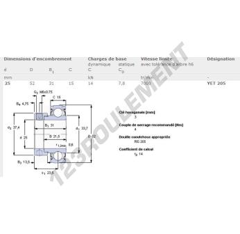 L'Accessoire De Palier connu sous la référence YET205-SKF SKF possède un diamètre intérieur de 25 mm, un diamètre extérieur de 52 mm et une épaisseur de 31 mm. Il est fabriqué en .