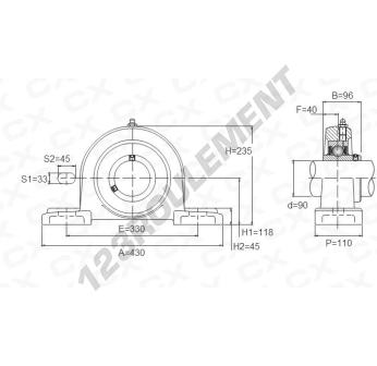 Le Palier - 2 Fixations connu sous la référence UCP318 Générique possède un diamètre d'alésage de 90 mm et un entraxe de fixation de 330 mm. Cette référence est fabriquée en fonte et le type de serrage se fait par vis de blocage.