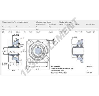 Le Palier - 4 Fixations connu sous la référence FY20-WF-SKF de la marque SKF possède un diamètre d'alésage de 20 mm et un entraxe de fixation de 63.5 mm. Cette référence est fabriquée en fonte et le type de serrage se fait par Bague de blocage excentrique.
