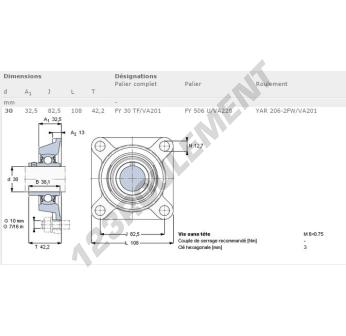 Le Palier - 4 Fixations connu sous la référence FY30TF-VA201-SKF de la marque SKF possède un diamètre d'alésage de 30 mm et un entraxe de fixation de 82.5 mm. Cette référence est fabriquée en fonte et le type de serrage se fait par vis de blocage.