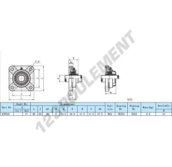 205 = dimensions du roulement et du palier