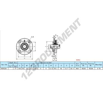 205 = dimensions du roulement et du palier