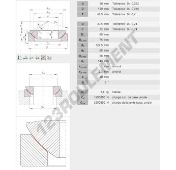 La Rotule Ge connue sous la référence GE50AW-INA, de la marque INA possède un diamètre intérieur de 50mm, un diamètre extérieur de 130mm et une épaisseur de 42.5mm.