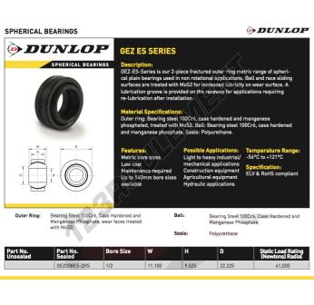 La Rotule Ge connue sous la référence GEZ008-ES-2RS-DUNLOP, de la marque DUNLOP possède un diamètre intérieur de 12.7mm, un diamètre extérieur de 22.225mm et une épaisseur de 11.1mm.