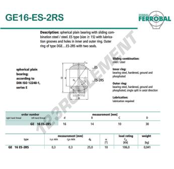 Référence : GE16-ES-2RS-DURBAL