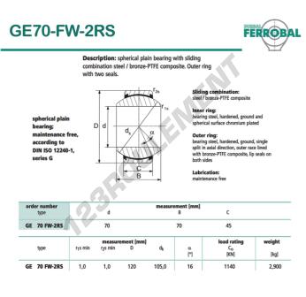 La Rotule Geew connue sous la référence GE70-FW-2RS-DURBAL, de la marque DURBAL possède un diamètre intérieur de 70mm, un diamètre extérieur de 120mm et une épaisseur de 45mm.