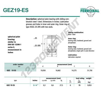 La Rotule Geew connue sous la référence GEZ19-ES-DURBAL, de la marque DURBAL possède un diamètre intérieur de 19.05mm, un diamètre extérieur de 31.75mm et une épaisseur de 14.275mm.