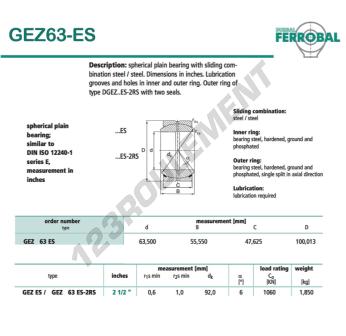 La Rotule Geew connue sous la référence GEZ63-ES-DURBAL, de la marque DURBAL possède un diamètre intérieur de 63.5mm, un diamètre extérieur de 100.013mm et une épaisseur de 47.625mm.