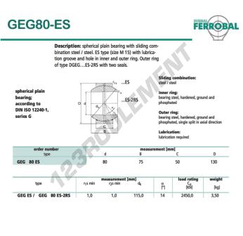 La Rotule Geg connue sous la référence GEG80-ES-DURBAL DURBAL possède un diamètre intérieur de 80 mm, un diamètre extérieur de 130 mm et une épaisseur de 50 mm.