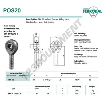La Rotule Sa connue sous la référence POS20-DURBAL, de la marque DURBAL possède un pas de vis de et un Filetage à droite, un diamètre intérieur de 20mm, un diamètre extérieur de 50mm et une épaisseur de 25mm.