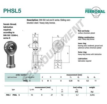 La Rotule Si connue sous la référence PHSL5-DURBAL, de la marque DURBAL possède un diamètre intérieur de 5mm, un diamètre extérieur de 16mm et une épaisseur de 8mm.