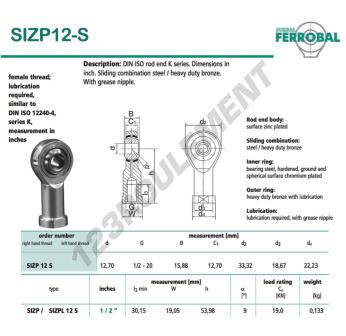La Rotule Si connue sous la référence SIZP12-S-DURBAL, de la marque DURBAL possède un diamètre intérieur de 12.7mm, un diamètre extérieur de 33.32mm et une épaisseur de 15.88mm.