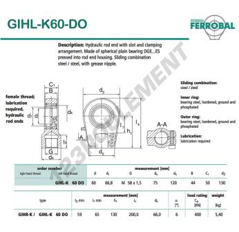 La Rotule Tapr connue sous la référence GIHL-K60-DO-DURBAL de la marque DURBAL possède un diamètre intérieur de 60mm, un diamètre extérieur de 130mm et une épaisseur de 50mm.