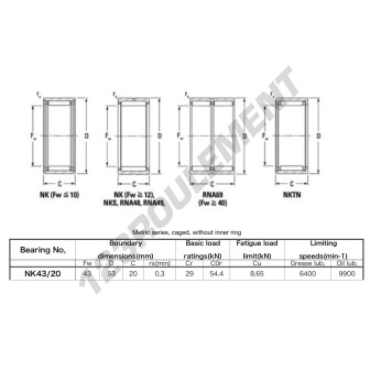 Le Roulement à Aiguilles, connu sous la référence NK4320-JTEKT, de la marque JTEKT, possède un diamètre intérieur de 43mm, un diamètre extérieur de 53mm et une épaisseur de 20mm.
