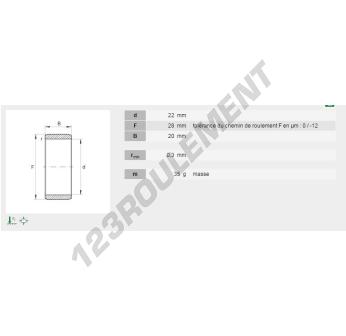 La Bague Intérieure connue sous la référence IR22X28X20-XL-INA de la marque INA possède un diamètre intérieur de 22 mm, un diamètre extérieur de 28 mm et une longueur de 20 mm.