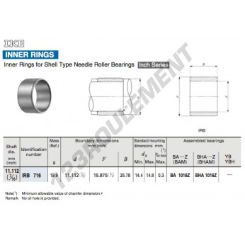 La Bague Intérieure connue sous la référence IRB716-IKO de la marque IKO possède un diamètre intérieur de 11.112 mm, un diamètre extérieur de 15.875 mm et une longueur de 25.78 mm.