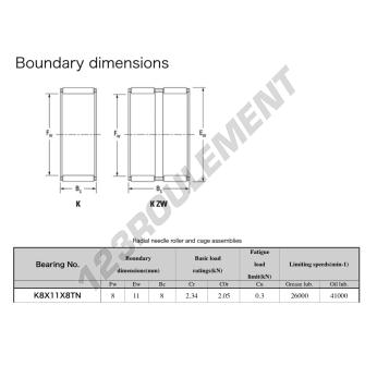 La Cage à Aiguilles, connue sous la référence K8X11X8-TN-JTEKT, de la marque JTEKT, possède un diamètre intérieur de 8 mm, un diamètre extérieur de 11 mm et une épaisseur de 8 mm.