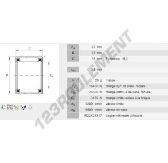 La Douille à Aiguilles, connue sous la référence HK2816-BK-INA, de la marque INA, possède un diamètre intérieur de 28 mm, un diamètre extérieur de 35 mm et une épaisseur de 16 mm.