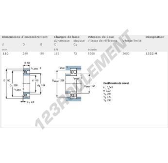 Le Roulement à Rotule Sur Billes, connu sous la référence 1322-M-SKF, de la marque SKF, possède un diamètre intérieur de 110mm, un diamètre extérieur de 240mm et une épaisseur de 50mm.