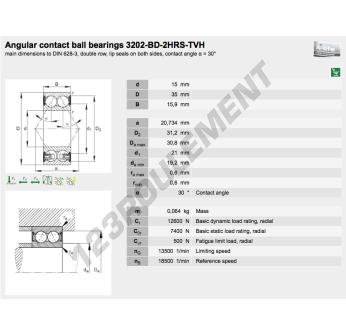 Le Roulement à Billes, connu sous la référence 3202-BD-2HRS-TVH-FAG, de la marque FAG, possède un diamètre intérieur de 15mm, un diamètre extérieur de 35mm et une épaisseur de 15.9mm.