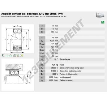 Le Roulement à Billes, connu sous la référence 3212-BD-2HRS-TVH-FAG, de la marque FAG, possède un diamètre intérieur de 60mm, un diamètre extérieur de 110mm et une épaisseur de 36.5mm.