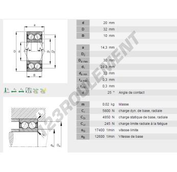 Le Roulement à Billes, connu sous la référence 3804-2Z-INA, de la marque INA, possède un diamètre intérieur de 20mm, un diamètre extérieur de 32mm et une épaisseur de 10mm.