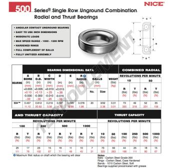 Le Roulement à Billes, connu sous la référence 504-NICE, de la marque NICE, possède un diamètre intérieur de 11.1mm, un diamètre extérieur de 20.62mm et une épaisseur de 5.56mm.