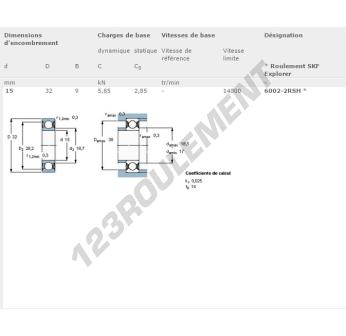 Il peut encaisser une charge dynamique de 5.85 kN et une charge statique de 2.85 kN, avec une vitesse de rotation maximale de 26000 tr/min.