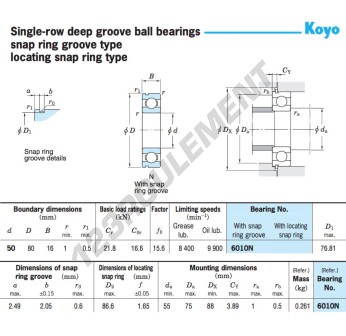 Le Roulement à Billes, connu sous la référence 6010-N-JTEKT, de la marque JTEKT, possède un diamètre intérieur de 50mm, un diamètre extérieur de 80mm et une épaisseur de 16mm.