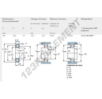 Le Roulement à Billes, connu sous la référence 7315-BECBM-SKF, de la marque SKF, possède un diamètre intérieur de 75mm, un diamètre extérieur de 160mm et une épaisseur de 37mm.