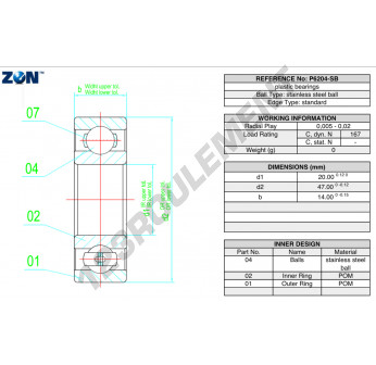 Le Roulement à Billes, connu sous la référence P6204-SB-ZEN, de la marque ZEN, possède un diamètre intérieur de 20mm, un diamètre extérieur de 47mm et une épaisseur de 14mm.