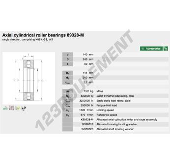 La Butée à Rouleaux, connue sous la référence 89328-M-INA, de la marque INA, possède un diamètre intérieur de 140 mm, un diamètre extérieur de 240 mm et une épaisseur de 60 mm.