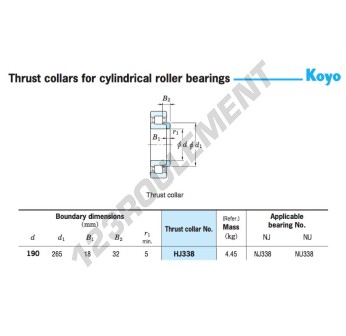 Le Roulement à Rouleaux, connu sous la référence HJ338-JTEKT, de la marque JTEKT, possède un diamètre intérieur de 190 mm, un diamètre extérieur de 265 mm et une épaisseur de 18 mm.
