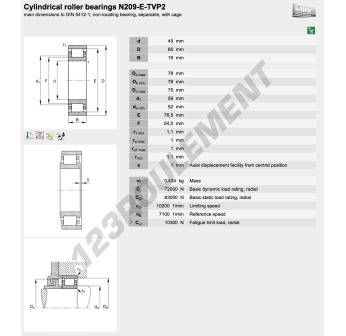 Le Roulement à Rouleaux, connu sous la référence N209-E-XL-TVP2-C3-FAG, de la marque FAG, possède un diamètre intérieur de 45 mm, un diamètre extérieur de 85 mm et une épaisseur de 19 mm.